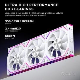 Jungle Leopard Interstellar-V2RS Daisy Chain RGB PC Ventola 120MM 3er Pack,1850RPM/68CFM/2.4mmH2O,5V3PIN ARGB und 12V4PIN PWM Ventola (Bianco)