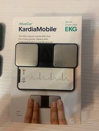 Vendo KardiaMobile + custodia, con scatola originale. Usato pochissimo. Dispositivo KardiaMobile per elettrocardiogrammi personali. Include una custodia protettiva. - Design compatto e portatile. - Superficie ruvida dell'elettrodo. -Rileva la fibrillazione atriale, risultati in 30 secondi. -Funziona con smartphone.
