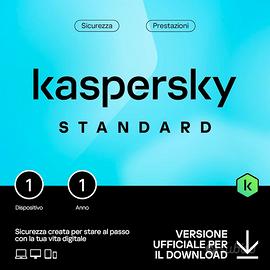 Kaspersky Standard 2025 Antivirus | 1 Dispositivo | 1 Anno | PC | |Sicurezza avanzata | Protezione delle operazioni bancarie online | Ottimizzazione delle prestazioni | PC/Mac/Mobile Codice d'attivazione via email