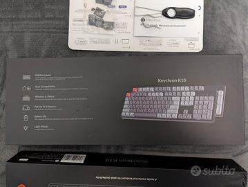 Vendo tastiera Keychron K10 Full Size (100%) Layout ANSI US Monta switch marroni ed ha la cornice in alluminio. Sul configuratore Keychron dovreste trovarla al codice K10J3 Vendo ovviamente con tutto quello che vedete in foto. Funziona a batteria (ricaricabile) collegata tramite bluetooth oppure via cavo. Compatibile sia con Windows che con Mac, funzniona in realtà collegata a una miriade di dispositivi, nelle foto era collegata al telefono. Usata veramente poco, acquistata consapevole del suo layout ma purtroppo non mi ci trovo, peccato perché mi piace molto in realtà. Prezzo leggermente trattabile
