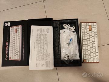 Vendo Tastiera meccanica Keychron K2 HE 75% wireless con switch magnetici e illuminazione RGB, prodotto come nuovo, usato pochissimo, la tastiera è perfetta in ogni particolare, il suono prodotto dai tasti risulta molto Creamy, incluso tutti gli accessori originali come da foto.