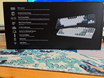 Tastiera high-end della Keychron, con case in alluminio e switch Gateron Jupiter Banana. I tasti sono nel layout ISO tedesco. Opzioni di connettività: cavo, dongle 2.4 GHz (incluso) o Bluetooth. Case mai aperto, usata pochissimo, condizioni praticamente perfette.
