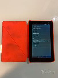 Vendo questo tablet della marca Amazon, il Kindle Fire di 5°A generazione. Il tablet è perfettamente funzionante anche se un po’ datato, inlucsa cover ufficiale per questo modello di colore arancione. La differenza rispetto ad un Kindle tradizionale è che questo ha lo schermo come i normali tablet, ma ciò gli permette di svolgere più funzioni oltre che la sola lettura di libri.