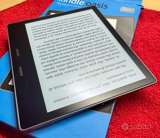 Vendo Kindle Oasis 10ª generazione, senza pubblicità, il modello top di gamma di Amazon, ideale per chi ama leggere con il massimo comfort. Dispositivo in eccellenti condizioni, praticamente nuovo, senza il minimo segno di usura, con scatola e cavo di ricarica originale, inoltre è inclusa una cover trasparente per proteggere il dispositivo da urti o graffi. Ebook reader fuori produzione, prezzo non trattabile. Caratteristiche principali: •Schermo E-Ink da 7 pollici (300 ppi), qualità simile alla carta stampata •Luce frontale regolabile + tonalità calda (ambra) per lettura notturna, sensore di luminosità automatica •Impermeabile (IPX8): resistente ad acqua, ideale per mare, piscina o vasca •Design ergonomico in alluminio, perfetto per uso con una mano •Pulsanti fisici per cambio pagina + touch screen •Rotazione automatica dello schermo •Memoria: 8 GB •Connettività: Wi-Fi •Batteria: autonomia fino a settimane (in base all’uso) •Ricarica: micro-USB •Materiale: scocca in alluminio •Peso: circa 188 g Già ripristinato ai dati di fabbrica, diverse lingue disponibili: italiano, francese, inglese, portoghese, spagnolo ecc.. Parole chiave: Kindle, kobo, tolino vision, paperwhite, libro, eBook reader, forma, sage, libra 2, onyx boox, Clara Hd, Nia, e-reader, oasis
