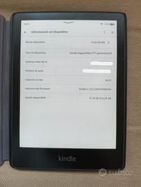 Amazon Kindle Paperwhite di 11ª generazione in ottime condizioni. Funziona perfettamente, schermo senza graffi e sempre usato con cura. Ideale per leggere ovunque grazie alla luce integrata e alla batteria che dura tantissimo. Memoria 6 gb Wi-Fi Luce regolabile Inclusa cover originale in tessuto Non è incluso il caricatore (si ricarica con cavo USB-C standard) Lo vendo perché non lo utilizzo più.