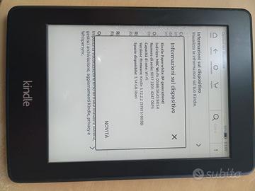 Vendi Kindle paperwhite 6 generazione. Il Kindle funziona perfettamente, ha la batteria nuova ma come si vede dalle foto ha alcuni difetti nello schermo in alto a sinistra e in basso. Non dà fastidio durante la lettura ma se si aumenta la luminosità verso il massimo si nota maggiormente. Venduto as is. Volendo disponibile custodia grigia di stoffa con zip e tasca, come nuova a 7€. Foto in privato.