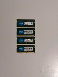 Vendo kit completo di memorie RAM della Crucial per un totale di 32GB. Si tratta di 4 banchi da 8GB l'uno, smontati dal mio iMac 2020 per passaggio ad altra configurazione. Sono in condizioni perfette e pronte all'uso, ottime per fare un upgrade importante a portatili, Mini PC o altri iMac compatibili. Il prezzo indicato è per l'acquisto in blocco di tutti e 32 i GB. Valuto e accetto anche la vendita dei singoli banchi da 8GB separatamente. Scrivetemi pure in privato se siete interessati a prenderne solo uno o due!
