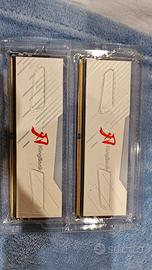 Vendo kit di memoria RAM DDR5 KingBank SharpBlade RGB da 48GB (2x24GB). Si tratta di un kit certificato per l'altissima velocità di 8400MT/s, ideale per chi cerca le massime prestazioni su piattaforme Intel di ultima generazione (Z890 per Intel ULTRA 2 era la configurazione più giusta perché per raggiungere gli 8400MHz è necessaria una scheda madre di fascia alta (preferibilmente a 2 slot RAM come le serie Apex, Tachyon o ITX) e un processore con un controller di memoria (IMC) molto solido. Velocità: 8400MHz (XMP Ready) Latenza: CL38 Chip: Garantiti Hynix A-die (il top per stabilità e overclock a frequenze elevate) Capacità: 48GB (Taglio ideale per gaming e produttività pesante) Design: Dissipatore bianco con barra LED RGB "Acquistate per un progetto PC gaming non portato a termine. Le memorie non sono state montate... vendo per inutilizzo dell'intera build... Condizioni: Perfette, pari al nuovo, con scatola originale.