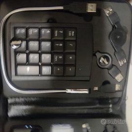 Kit accessori pc in custodia per ogni evenienza fra cui mouse, luce, tastiera numerica, cavi vari.