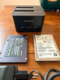 Kit Professionale Archiviazione: Docking FIDECO + SSD Samsung 1TB + + HDD 1TB Vendo setup completo per gestione dati e backup ad alte prestazioni. Il kit è composto da componenti di fascia alta, ideali per chi cerca velocità e affidabilità. Il pacchetto comprende: SSD Samsung 870 QVO 1TB: Il top di gamma per l'archiviazione SATA. (Prezzo attuale del nuovo: circa €160). Velocità incredibili e tecnologia V-NAND. Perfetto per far rinascere un PC o come memoria esterna ultra-rapida. Docking Station FIDECO USB 3.0: (Valore commerciale €40). Supporta due dischi contemporaneamente, ha la funzione "Offline Clone" (clona dischi senza PC) e funge da HUB con 2 porte USB frontali e lettore di schede SD. Hard Disk HGST 1TB (7200 RPM): Disco rigido meccanico ad alte prestazioni (7200 giri, non i classici 5400) ottimo per il backup dei dati a lungo termine. Condizioni: Tutti i componenti sono stati testati e sono perfettamente funzionanti. L'alimentatore e il cavo USB per la docking station sono inclusi. Dischi già formattati e pronti all'uso. Consegna a mano preferibile su Reggio Emilia o Bologna Spedizione disponibile con imballaggi originali.
