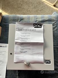 Vendi per inutilizzo mai usato Kit controllo accessi completo per la gestione di un singolo varco/porta • Unità di controllo singolo varco TCP/IP - RS-485 • Box metallico con tamper antimanomissione • Alimentatore supplementare 12VDC 3 A • Relè comando serratura/elettromagnete, Relè ausiliario (varco forzato) • Ingresso 1-2 lettori RFID • Ingresso RTE pulsante apriporta • Ingresso Contatto stato porta • One Touch Test (per test Varco) IL KIT COMPRENDE: - N°1 UNITÀ DI CONTROLLO PAC 511 DCI IN BOX METALLICO CON ALIMENTATORE DA 3A ART. 909030511 - N°1 LETTORE PER MONTANTE PAC ONEPROX™ GS3 HF ART. 909020120 - N°10 PORTACHIAVI PAC OPS™ LITE CON CLIP – BLU ART. 909021104 - N°1 SOFTWARE ACCESS CENTRAL™ LICENZA SE ART. 13490/1.00