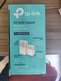 Kit di estensione di rete TP-Link Powerline AV1000. Dispositivo per la diffusione della rete internet in qualsiasi zona della casa utilizzando l'impianto elettrico e dotato di sistema wifi Istallazione rapida ed estremamente semplice - Velocità Powerline fino a 1000Mbps. - Wi-Fi Dual Band AC750 (300Mbps + 433Mbps). Completo di due dispositivi, cavi di collegamento lan, confezione originale ed istruzioni Spedizione rapida Vendita da privato e priva di garanzia