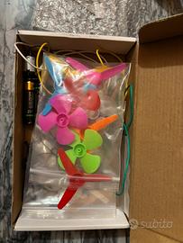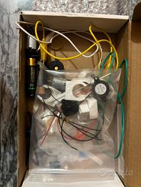 Nel kit trovi motorini, ventole, LED, batterie, fili, interruttori, e tutto l’occorrente per fare i primi progetti.