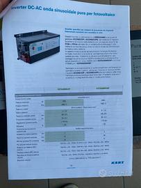 kit inverter KERT 3kW con quadro di gestione, modello KSTA3000S24F. Utilizzabile anche per mezzi mobili. Praticamente nuovo. Completo di libretto di istruzioni. Prezzo trattabile