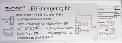 Kit che rende qualsiasi illuminazione led esistente in luce di emergenza in caso di mancanza di corrente, senza dover installare altre luci o accumulatori.