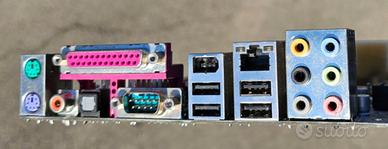 Vendo Piastra madre con CPU Intel Core 2 Duo E6400 dual core, con 4Gb di RAM Vedere foto per dotazione porte. Perfettamente funzionante e testata.