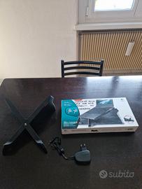 Vendo kit per trasformare un PC notebook in un PC desktop da tavolo. Comprende: 1) Un supporto per rialzare il notebook logitech in modo che lo schermo sia all'altezza degli occhi con hub USB (aggiunge altre 3 porte USB al PC). 2) Tastiera Logitech Wireless USB. 3) Mouse wireless USB Logitech ultraergonomico (non adatto ai mancini) e dotato di 4 tasti funzione programmabili con 2 modalità di scorrimento della rotellina. 4) Borsa porta PC con monitor fino a 17.3 pollici. 5) Tappetino per mouse con poggiapolso ergonomico. Tutto completo di scatola, manuale e batterie in ottime condizioni usato pochissimo. Il computer portatile notebook raffigurato nella prima foto posto sul rialzo non è compreso nel prezzo e non è in vendita.