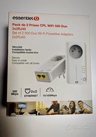 Vendo per inutilizzo kit Powerline CPL Wi-Fi Essentiel B 550 Duo, ideale per portare ed estendere internet (Wi-Fi e via cavo) in ogni angolo della casa. Ottime condizioni, usato pochissimo, perfettamente funzionante.