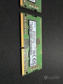Vendo coppia di memorie RAM Samsung originali (2 banchi da 8GB ciascuno, per un totale di 16GB), rimosse da un laptop MSI Katana per passaggio a categoria superiore. Le memorie sono in condizioni perfette, testate e perfettamente funzionanti. Ideali per chi vuole potenziare il proprio portatile (gaming, editing o multitasking) passando da 8GB a 16GB. Specifiche Tecniche: • Marca: Samsung • Modello: M471A1K43EB1-CWE • Capacità: 16GB (Set di 2 moduli da 8GB) • Tipo: DDR4 SODIMM (per Laptop / PC compatti) • Velocità: 3200 MHz (PC4-3200AA) • Configurazione: 1Rx8 (Single Rank) • Latenza: CL22 Compatibilità: Compatibili con la stragrande maggioranza dei notebook moderni che utilizzano memorie DDR4 (MSI, ASUS, HP, Dell, Lenovo, Acer, ecc.).