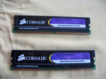 Vendo kit di 2 ram da 1GB+1GB cadauno per un totale di 2 GB marca CORSAIR DDR2 675 mhz modello CM2X1024-5400C4 4-4-4-12 1,90v GARANZIA A VITA come nuove prezzo affare per tutte due ram € 20,00. Massima serietà non perditempo le RAM sono con dissipatore altamente performanti e sono come nuove. Prima di chiedere controllate la compatibilità della scheda madre. Per contatti email puleo@inwind.it cell. 3492889677 (vodafone)