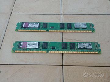Vendo KIT RAM Kingston da 8GB totali composto da 2 moduli da 4GB ciascuno, DDR3 1333MHz. SPECIFICHE TECNICHE: Marca: Kingston KVR (Kingston ValueRAM) Modello: KVR1333D3N9K2/8G Tipo: DDR3 SDRAM Capacità totale: 8GB (2x4GB) Frequenza: 1333MHz (PC3-10600) Voltaggio: 1.5V Kit Dual Channel (coppia abbinata) Non-ECC, Unbuffered CONDIZIONI: Moduli conservati nella confezione antistatica originale, mai utilizzati o usati pochissimo. In ottime condizioni. COMPATIBILITÀ: Ideali per upgrade di PC desktop, workstation o sistemi datati (2010-2015 circa) che supportano DDR3. Verificare la compatibilità con la propria scheda madre prima dell'acquisto.