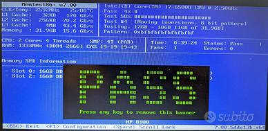 Vendo Kit Ram Samsung 32GB 2x16 SO-DIMM DDR4-2666 usato e funzionante come da screen di memtest.