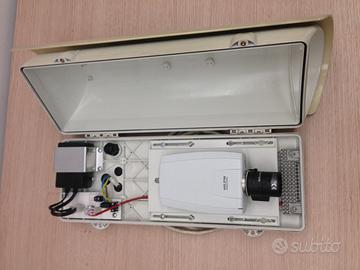 -Custodia per installare la telecamera in esterno, completa di riscaldamento del vetro frontale per evitare l'appannamento, palpebra antiriflesso.