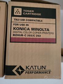 A CAUSA DELLA SOSTITUZIONE DELLA STAMPANTE MULTIFUNZIONE, SI VENDONO (TUTTE INSIEME) NUOVE CARTUCCE TONER. KONICA MINOLTA BIZHUB C203 C253 TN213C - CIANO KONICA MINOLTA BIZHUB C203 C253 TN213M - MAGENTA KONICA MINOLTA BIZHUB C203 C253 TN213Y - GIALLO TONER CONTAINER OEM PN 1902ND0UN0 GUARDARE FOTO PER DETTAGLI E CODICI