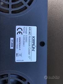 Vendo notebook cooler marca Kraun per computer portatili fino a 17". In alluminio e con 2 ventole alimentate da presa USB (da collegare al PC)