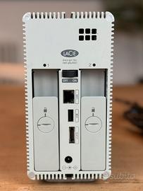 Sistema di archiviazione di rete professionale (NAS) LaCie. Monta 2 hard disk da 2 TB ciascuno (totale 4 TB) già installati e formattati.