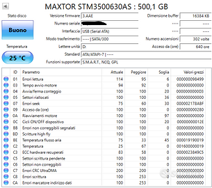 L'Hard Disk interno è in perfette condizioni (vedi screenshot di CrystalDiskInfo).