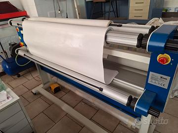 laminatore pneumatico caldo-freddo che accetta materiali di larghezza fino a 160 cm, Velocità di laminazione: 5 mq/ min Temperatura massima di riscaldamento: 60°C Spessore massimo del materiale: 30 mm Inclusi nella confezione: compressore, interruttore a pedale