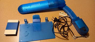 Rara lampada da computer vintage VICEVERSA. Di design italiano. Mai usata, perfettamente funzionante ancora in imballo originale con cartellino attaccato e con istruzioni ,come da foto. Nonostante la conservazione nello scatolo originale una parte ( non visibile quando la lampada è montata)si è leggermente graffiata, come visibile nelle foto. Per collezionisti ( è davvero raro trovarla adesso, specialmente funzionante) è comoda perché si adatta al computer senza occupare spazio sul piano di lavoro. Il prezzo tiene conto del piccolo difetto estetico.