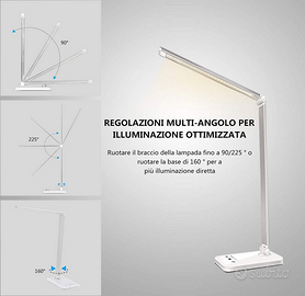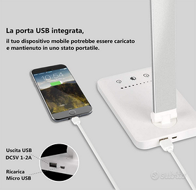 Lampada LED per PC, alimentata con cavo USB. Utilizzabile da Scrivania con Protezione Degli Occhi, lampada Touch Control Pieghevole per cameretta, ufficio, con porta di ricarica USB, 10 livelli di luminosità 5 modalità di illuminazione. Colore bianco. Merce nuova ancora imballata in confezione originale.