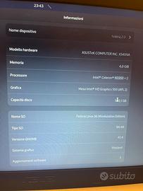 •RAM 4gb •HDD 500gb (meccanico) •OS Linux Fedora (uscito di fabbrica con windows 10) •Caricatore incluso (con filo danneggiato) Leggermente graffiato sulla scocca interna (dove c'è la tastiera) Vendo per non utilizzo