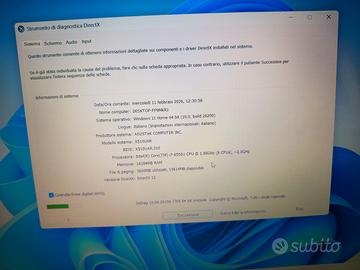Laptop Asus VivoBook 15.6" CPU Intel i7 8550U 1.80 Ghz Memoria DDR 4 16 Gb SSD 256 Gb + Hard Disk 1000 Gb win 11