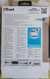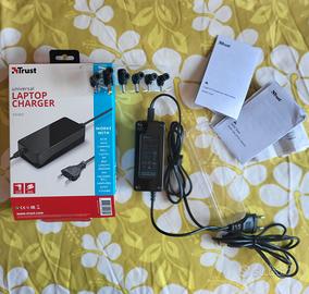 Alimentatore universale Trust per portatili usato una volta, potenza 70 watt con vari adattatori.