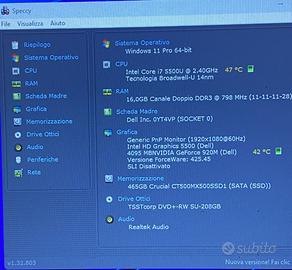 Windows 11 Pro - Schermo da 17", Processore i7 5500U - Video 1600 x 900 HD+, SSD da 500 GB, 16 GB di RAM, Scheda grafica: Intel HD Graphics5500, 1 porta HDMI; 2 porte USB 2.0; 1 porta USB 3.0; 1 presa jack, DVD, alimentatore originale. Perfetto!