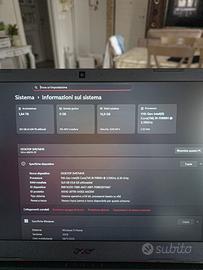 Vendo fantastico PC da Gaming Acer Nitro 5. il pc ha le seguenti caratteristiche: CPU: Core(TM) i9-11900H GPU: RTX 3060 6Gb Ram: 16Gb SSD: 512GB con possibilità di inserire un altro ssd Nmve e un HDD Batteria come nuova. Il pc permette di far girare giochi molto pesanti ed è ottimo anche per software di modellazione 3D. Do anche il caricatore e scatola originale. Unico difetto come visibile in foto una leggera crepa sul lato dello schermo (non dovuto da una caduta), per il resto è perfetto!