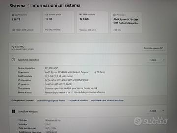 Vendo Laptop da gaming Asus Rog Strix Scar 17 in condizioni eccellenti con le seguenti caratteristiche: - CPU : AMD Ryzen 9 7945HX - GPU : Nvidia RTX 4090 mobile 16 GB - RAM : 32 Gb DDR5 4600 Mhz - SSD : Upgrade a 2 Tb Samsung NVme (originale di 512 Gb) - Display : 17.3” QHD (2560x1440) IPS da 240 Hz Inoltre regalo Base di raffreddamento TOP di gamma LLANA pagata ben 150€ 1 anno fa e usata pochissimo. Come si vede nella foto del batteryreport la batteria è ancora circa al 90% perchè utilizzato sempre con l’alimentazione e modalità salva-batteria con carica fino all’80%. No affaristi o perditempo grazie. Non esitate a contattarmi per qualsiasi domanda, ma sappiate che questo Laptop è un mostro che non teme nulla. Ricerca : RTX 4090, Laptop Gaming, Notebook Gaming, Pc Portatile Gaming