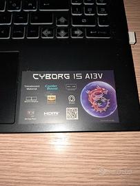 Msi Cyborg 15 Cpu:i7 13th gen Gpu: 4050 rtx 6gb vram Ram: 16 gb ddr5 Ssd: 512gb ssd Monitor 144hz full hd Non spedisco. In garanzia, ha 1 anno di utilizzo. Come nuovo munito anche di ventole accessorie.