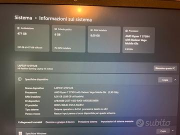 pc da gaming hp con seguenti componenti -processore ryzen 7 3750H -scheda video gtx 1650 -8gb ram -500gb ssd
