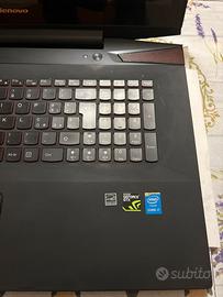 Vendo lenovo Y70-70 touch - Desing: Nero metallico - Processore: i7-4720HQ di quarta generazione - Display: 17.3” , 1920 x 1080 , full HD , multi touch - Ram: 8 GB - Archiviazione: SSD 250 GB - Grafica dedicata: NVIDIA® GeForce® GTX 860M - Grafica integrata: Intel® HD Graphics 4600 - Audio: JBL Dolby Advanced Audio v2 - Windows 10 Vendo questo laptop per inutilizzo, funziona perfettamente, batteria ancora in buone condizioni. Presenta alcuni segni normali di usura.