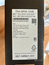 Vendo pc portatile da gaming MSI Thin GF63 12VE-053IT, caratteristiche tecniche principali: • Processore: Intel Core i7-12650H (12ª generazione). È un processore ad alte prestazioni con 10 core (6 Performance e 4 Efficient), ottimo sia per il gaming che per il multitasking pesante. • Scheda Video: NVIDIA GeForce RTX 4050 con 6GB di memoria dedicata GDDR6. Supporta tecnologie recenti come il DLSS 3, che aiuta molto nei giochi più moderni. • Memoria RAM: 16GB DDR4 (configurati come 2 banchi da 8GB). È lo standard ideale oggi per giocare e lavorare fluidamente. • Archiviazione: SSD da 1TB (NVMe PCIe Gen4), molto veloce e capiente. Display e Design • Schermo: 15.6 pollici, risoluzione Full HD (1920x1080). • Frequenza: 144Hz, ideale per giochi d'azione e competitivi per avere immagini più fluide. • Pannello: IPS-level con trattamento anti-riflesso (Anti-Glare). • Peso: Circa 1,86 kg, piuttosto leggero per essere un portatile da gaming. Connettività e Porte • Wireless: Wi-Fi 6 e Bluetooth 5.2. • Porte principali: Include porte USB 3.2 (Type-A e Type-C con supporto DisplayPort), HDMI (uscita 4K@30Hz), e porta LAN Ethernet. • Tastiera: Layout Italiano con retroilluminazione rossa. Batteria e Sistema Operativo • Batteria: 3 celle (52.4Wh), con alimentatore da 120W incluso. • Sistema Operativo: Windows 11.
