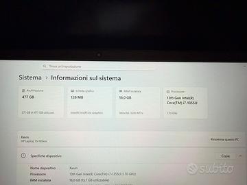 Vendo HP 15” modello 15-fd0043nl