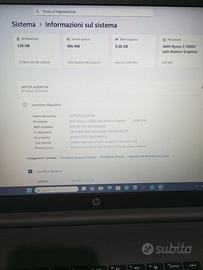 Vendo Laptop HP 15s-eq2081nl in ottime condizioni con Borsa nera Trust e Alimentatore. Qui di seguito i dati principali: Processore AMD Ryzen 3 5300U SSD da 256 GB 8 GB di RAM DDR4 Schermo LED HD da 39,62 cm (15,6") Modello scheda grafica - Radeon Graphics Altoparlante e Webcam integrati Wi-Fi e Bluetooth 4.2 2 porte USB 3.0 e 1 porta USB type C Vendo per passaggio a modello superiore. Solo ritiro a mano. Prezzo 200 EURO, poco trattabile. Contattare al numero 3496394747.