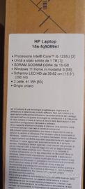 Laptop hp acquistato il 26/08/25 da euronics asti pertanto ancora in garanzia. Provvisto di scontrino e ricevuta di acquisto. Tutti i dati tecnici sono visibili nelle foto. ANCORA IMBALLATO, MAI ACCESO.