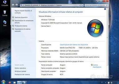 Computer vintage, ma ancora valido Installato Win 7 Ultimate, con installati prg di Grafica, Audio, Text to Speech, Video Editing, molte utili App. vari giochi di Star Wars, che girano bene su Win7 Caratteristiche hardware: - 2 CPU Intel Core T5600 2 processori di 1.83 GHz Sistema operativo a 64 bit - RAM 4 GB – max gestibile - 1 SSD da 111 GB - No Lettore Cd / DVD - sostituito da hd da 1 Tb - Porta Ethernet - Porta modem (RJ41) - 3 Porte USB, una non e’ funzionante. - Uscita VGA - Uscita / Entrata audio per cuffie e microfono (autoparlanti interni funzionanti) - WiFi - Schermo da 15.2" Alimentatore INCLUSO. Batteria in buono stato. Driver di sistema già installati. Solo SSD e hd da 1 Tb valgono quanto richiesto Consegna a mano.