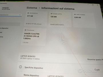 Laptop HP Envy 13 da riparare o usare per ricambi