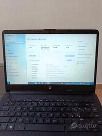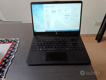 Laptop HP 14s nero in perfetto stato con caricatore incluso. 4 GB di RAM, processore AMD 3020e, SSD 119 GB. Prezzo trattabile